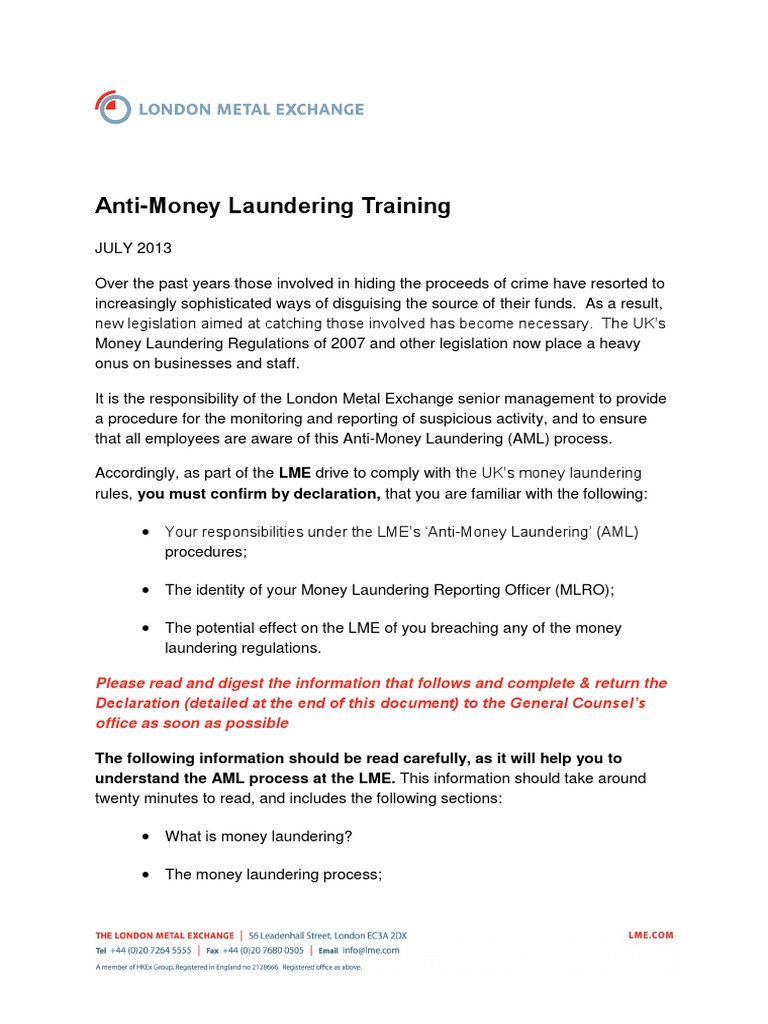Lme Anti Money Laundering Memo Money Laundering Public Sphere